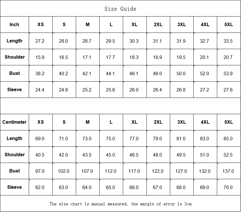 | Centimeter | XS | S | M | L | XL | 2XL | 3XL | 4XL | 5XL |