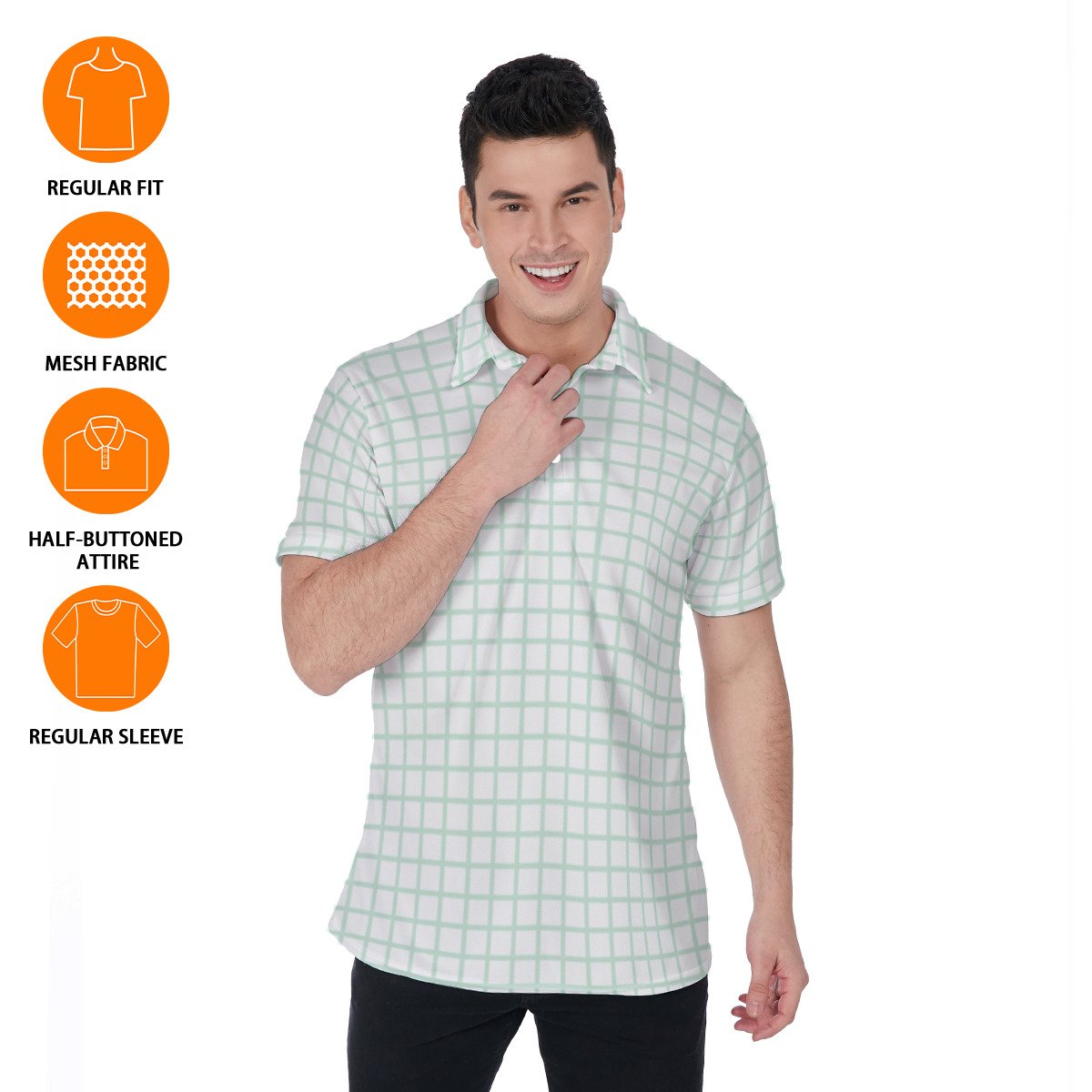 - Button placket and polo collar