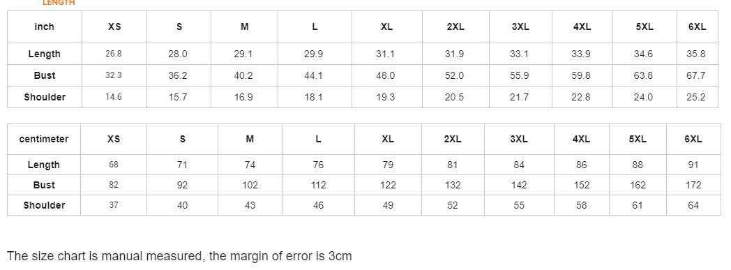 The size chart is manual measured, the margin of error is 3cm