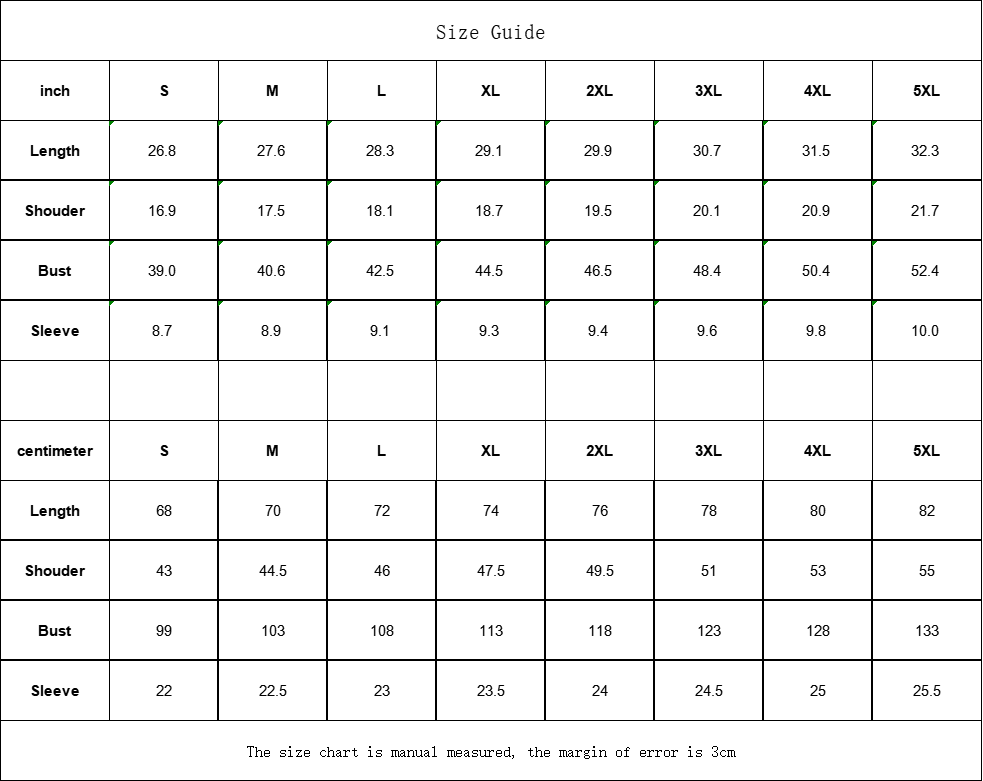 centimeter S M L XL 2XL 3XL 4XL 5XL