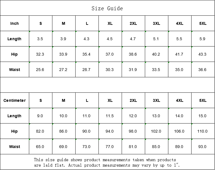 | Waist | 65.0 | 69.0 | 73.0 | 77.0 | 81.0 | 85.0 | 89.0 | 93.0 |