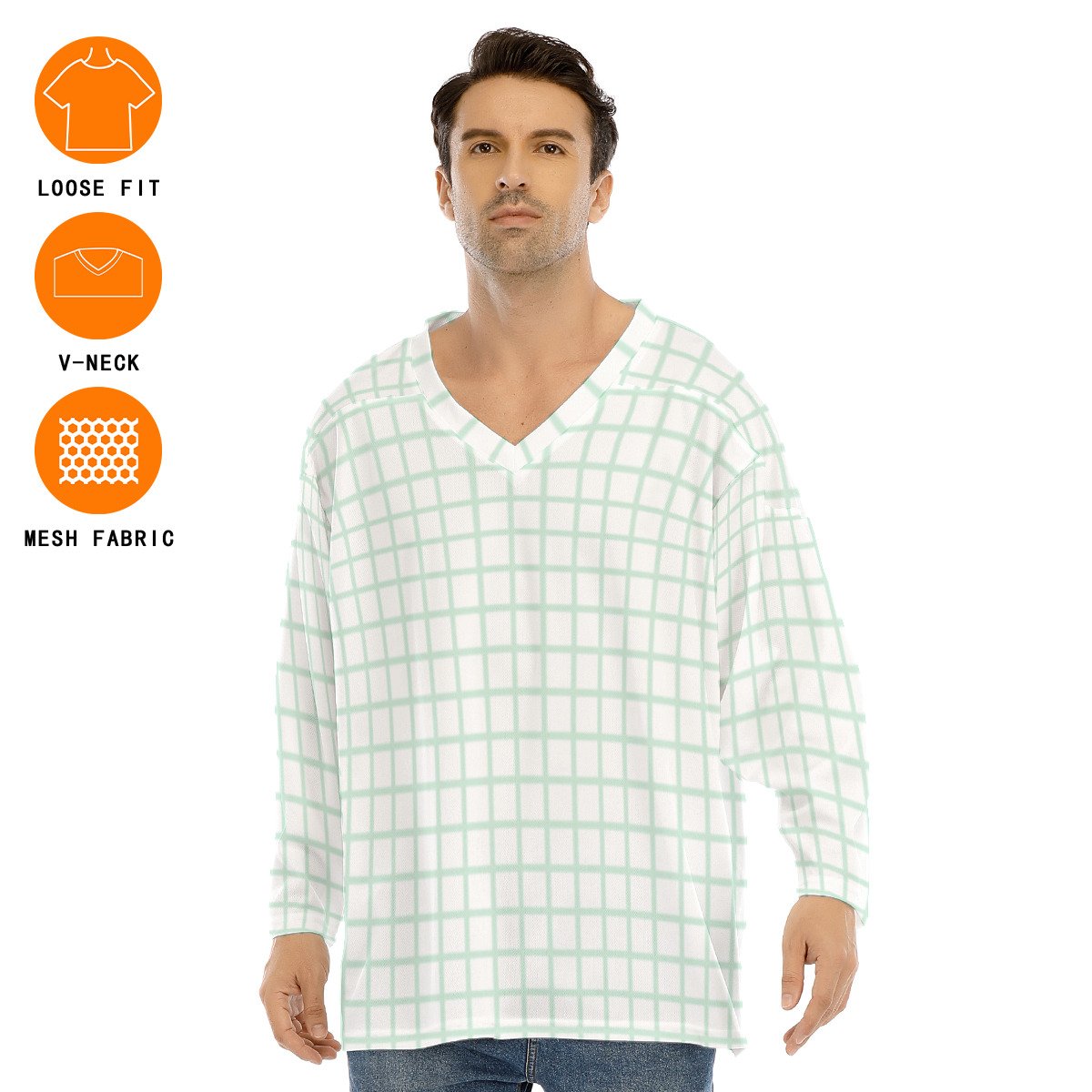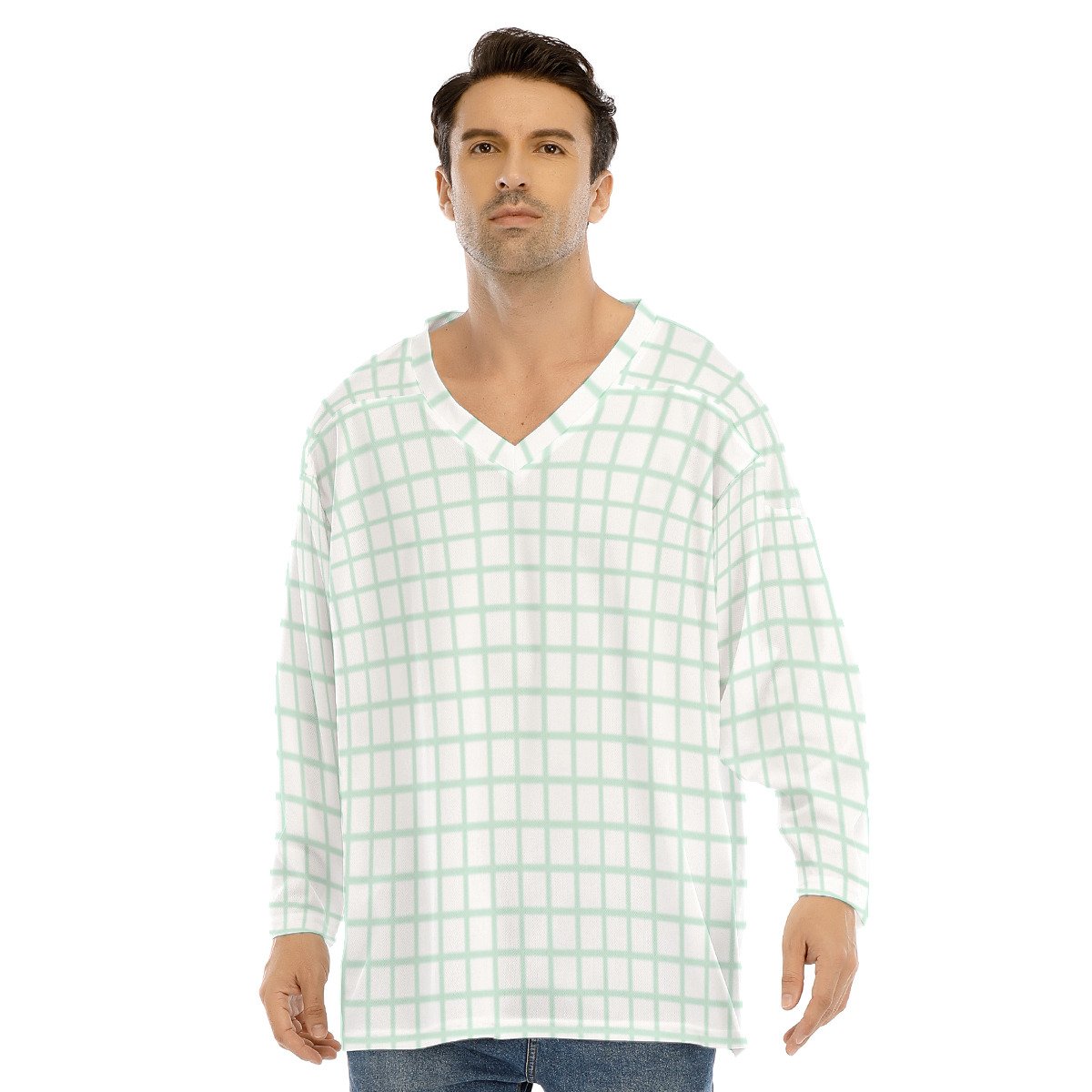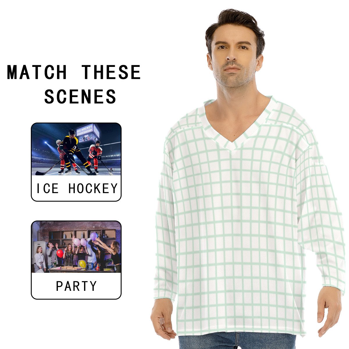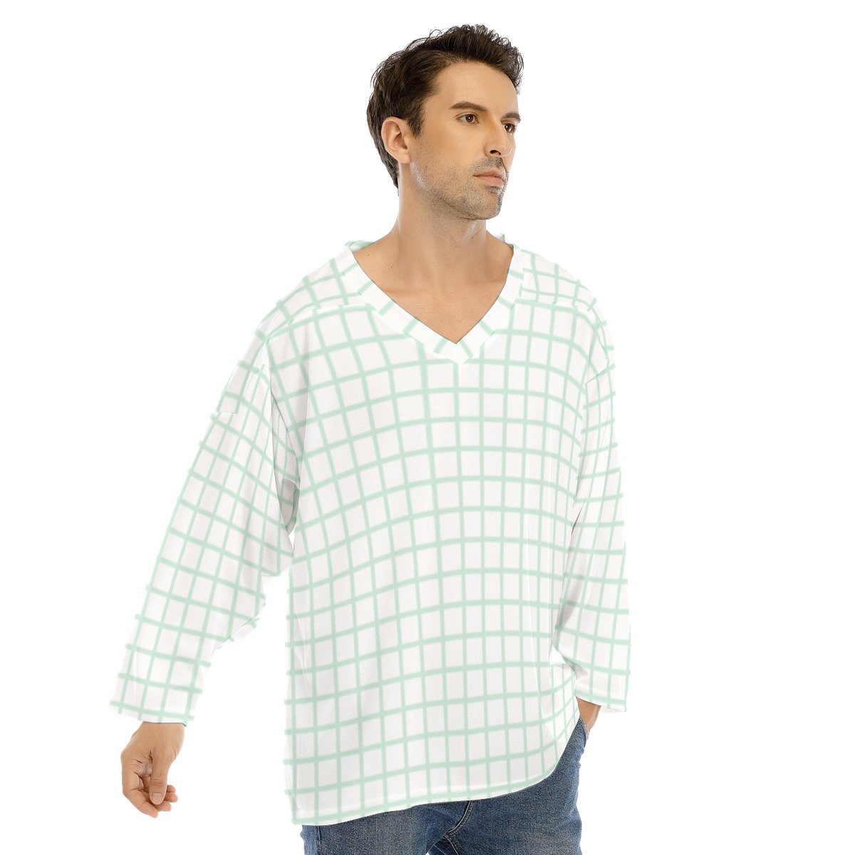Loose ice hockey jersey top, V-neck, long sleeves, comfortable for sports
