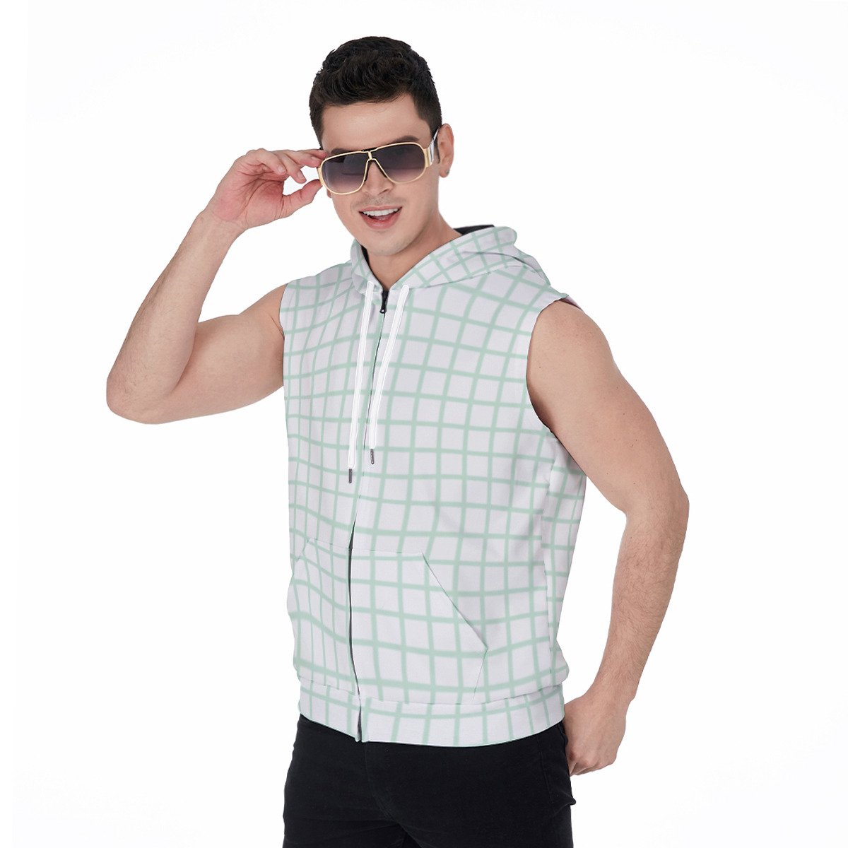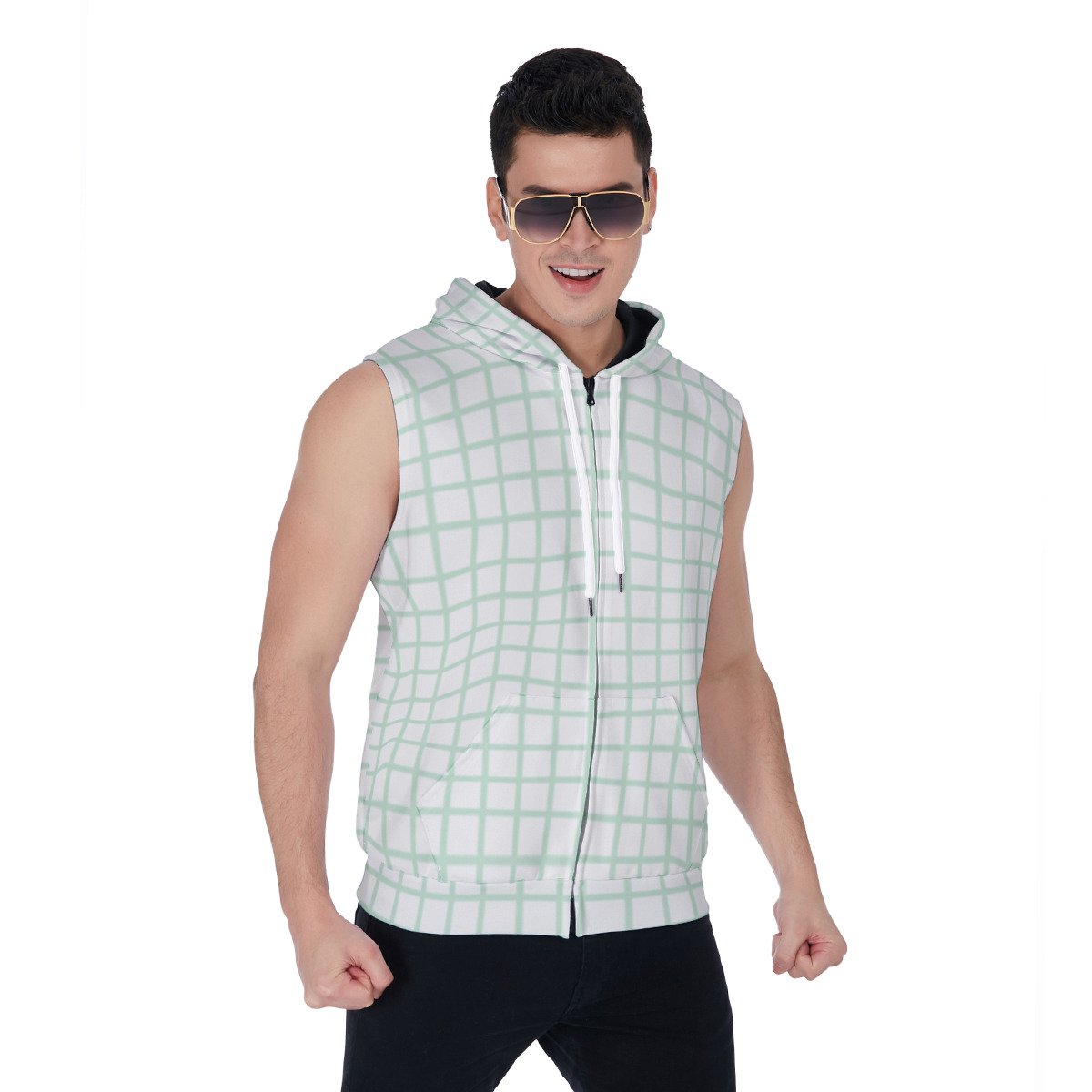 All-Over Print Men’s Zipper-Up Sleeveless Hoodie