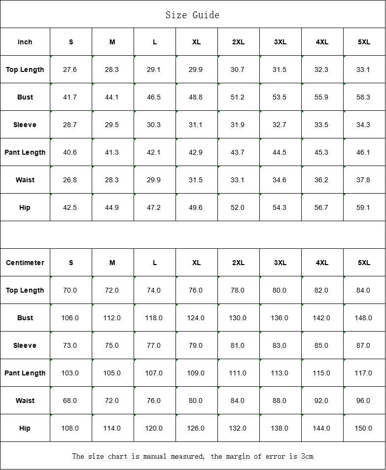 | Centimeter | S | M | L | XL | 2XL | 3XL | 4XL | 5XL |